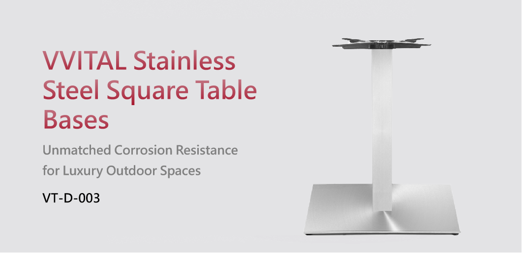 The VT-D-003 – VVITAL Stainless Steel Square Table Bases redefine outdoor durability with its surgical-grade 201 stainless steel construction, specifically engineered for coastal properties, luxury yachts, and high-end hospitality venues. This precision-crafted base combines saltwater resistance with sleek modern aesthetics, offering the ultimate foundation for premium outdoor dining.