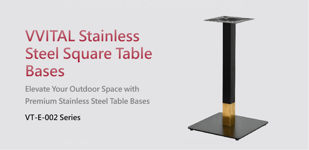 The VT-E-002 Series by VVITAL offers high-quality stainless steel round table bases, designed for durability and style in any outdoor setting. Crafted from rust-resistant 201/304 stainless steel, these table bases provide exceptional stability and long-lasting performance, making them ideal for patios, gardens, restaurants, hotels, and poolside areas.