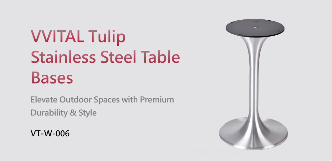 Upgrade your commercial or residential outdoor setting with the VVITAL Tulip Stainless Steel Table Base (Model VT-W-006). Crafted from premium heavy-duty 304 stainless steel, this sleek tulip-shaped base delivers exceptional corrosion resistance against rain, humidity, and coastal environments, ensuring decades of reliable performance with near-zero maintenance.